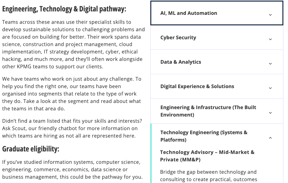 KPMG has provided a ton of information about each of these pathways on their graduate careers page.