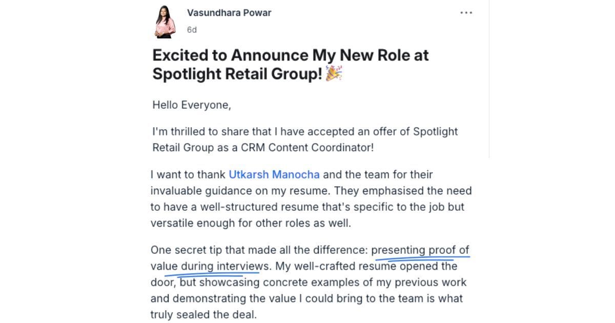 Pick results or examples that prove you’ve done something similar and can deliver again in this new context.